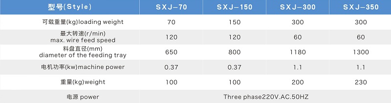 SXJ系列送線機是專門為電腦卷簧機配套設計, 也適用于其它卷簧機。在工作過程中會自動調節送線速度,使卷簧機和送線機的送線速度保持同步,當料盤上阻線時,會發出報警信號并自動停機。該產品操作簡單, 使用方便。